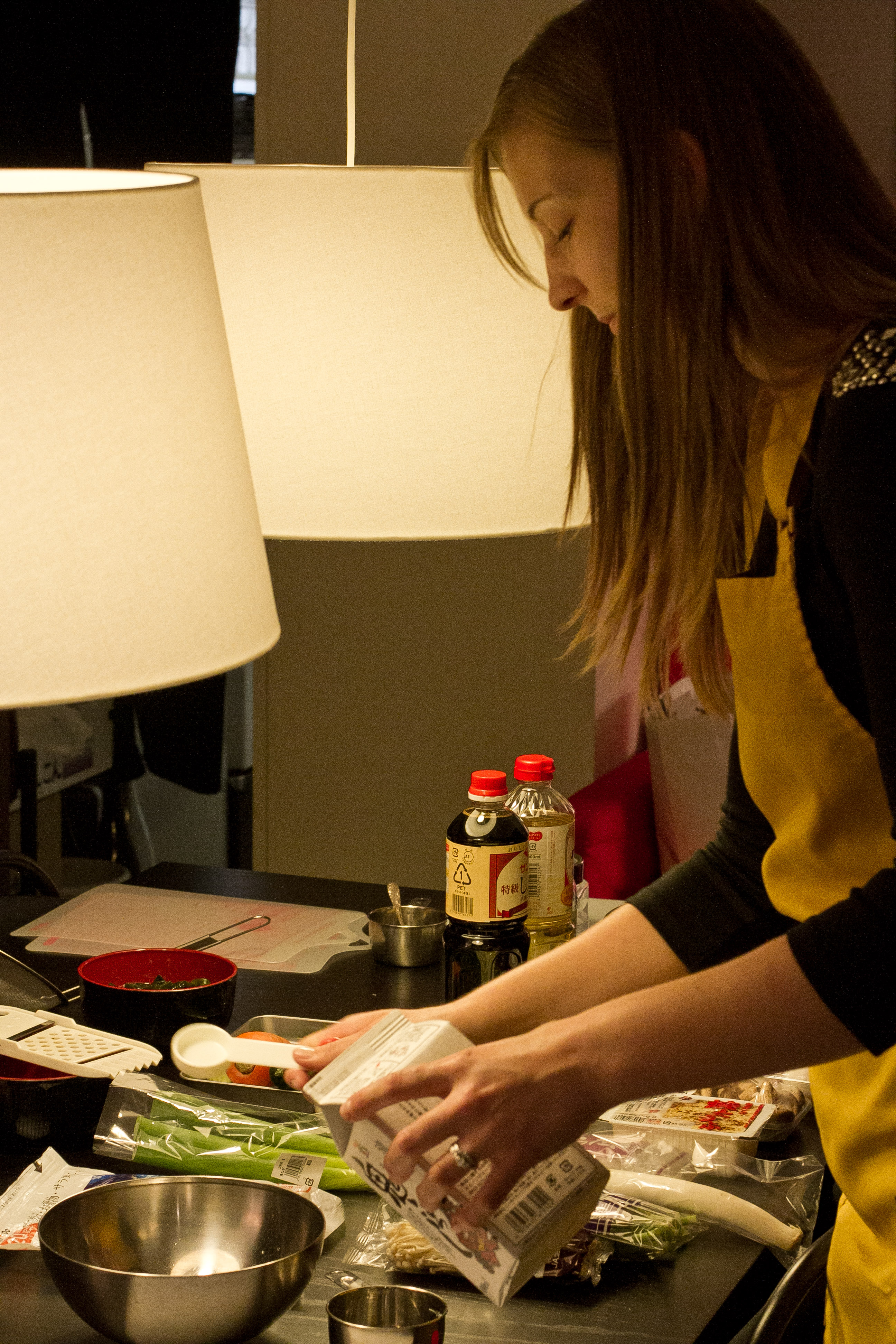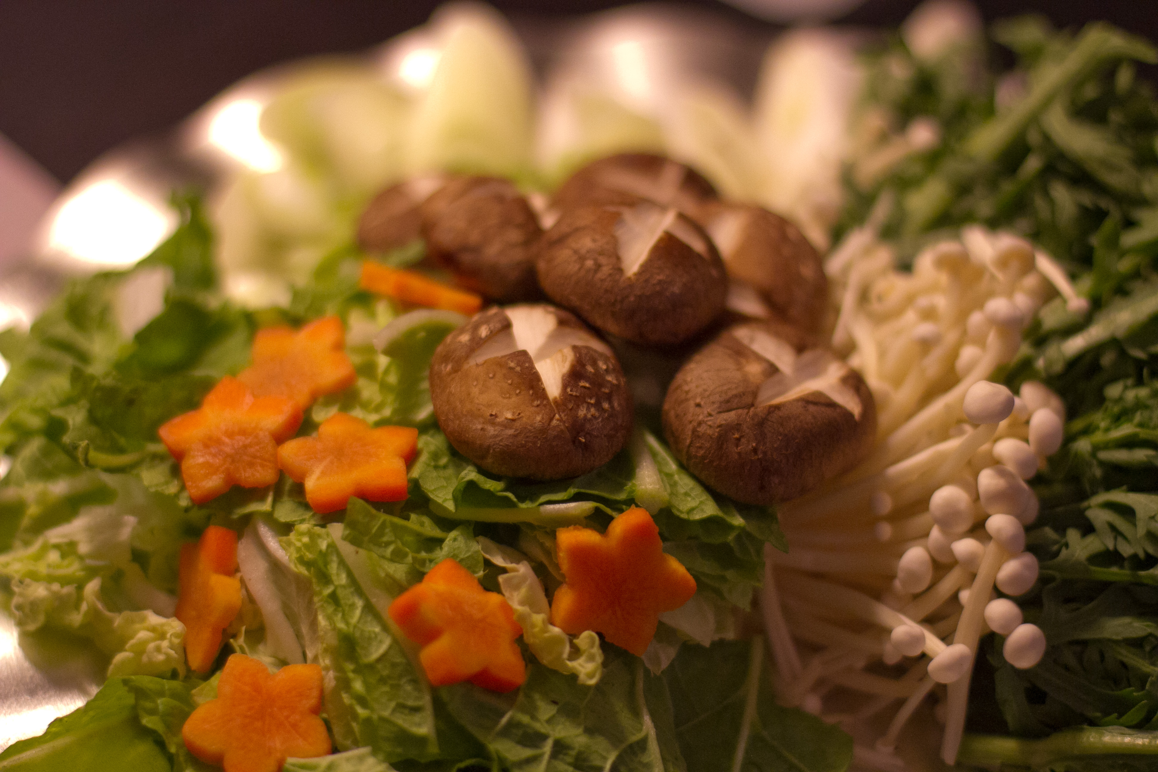 After we had the sauce was complete and cooling, we moved onto the vegetables. We cut and prepped onions, cabbage, carrots, tofu, and mushrooms. We added a hashed “X” on each mushroom which I thought was done for presentation alone but discovered it actually allows more sauce to seep into the mushroom. Yummy!